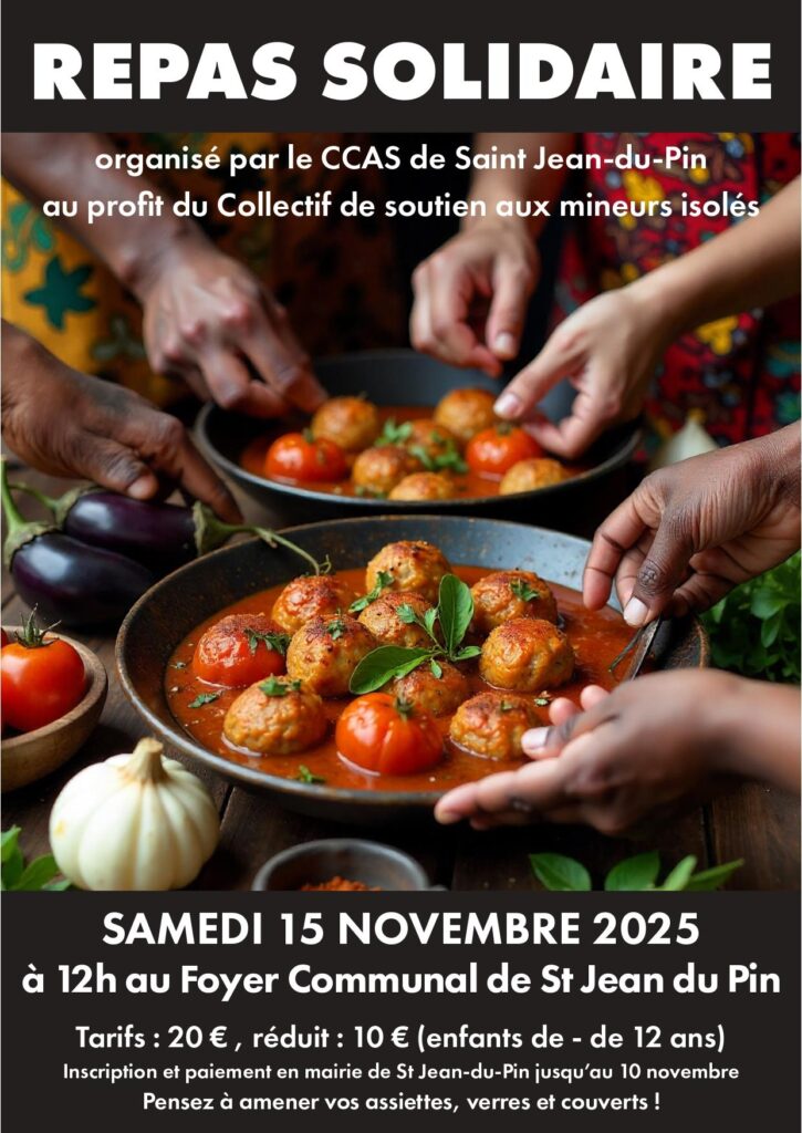 Un repas solidaire au profit des mineurs isolés est organisé à St Jean du Pin le samedi 15 novembre. Il faut réserver et payer avant le 10 novembre. Vous pouvez aussi faire vos réservations lors de la permanence administrative à la rétive le jeudi de 17h à 19h. Merci pour votre soutien.